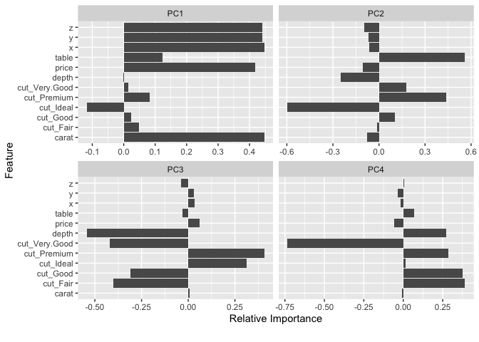 plot_prcomp(diamonds, maxcat = 5L)